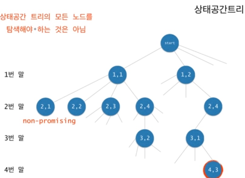 - 하지만, state-space tree의 모든 노드를 탐색할 필요는 없다.
