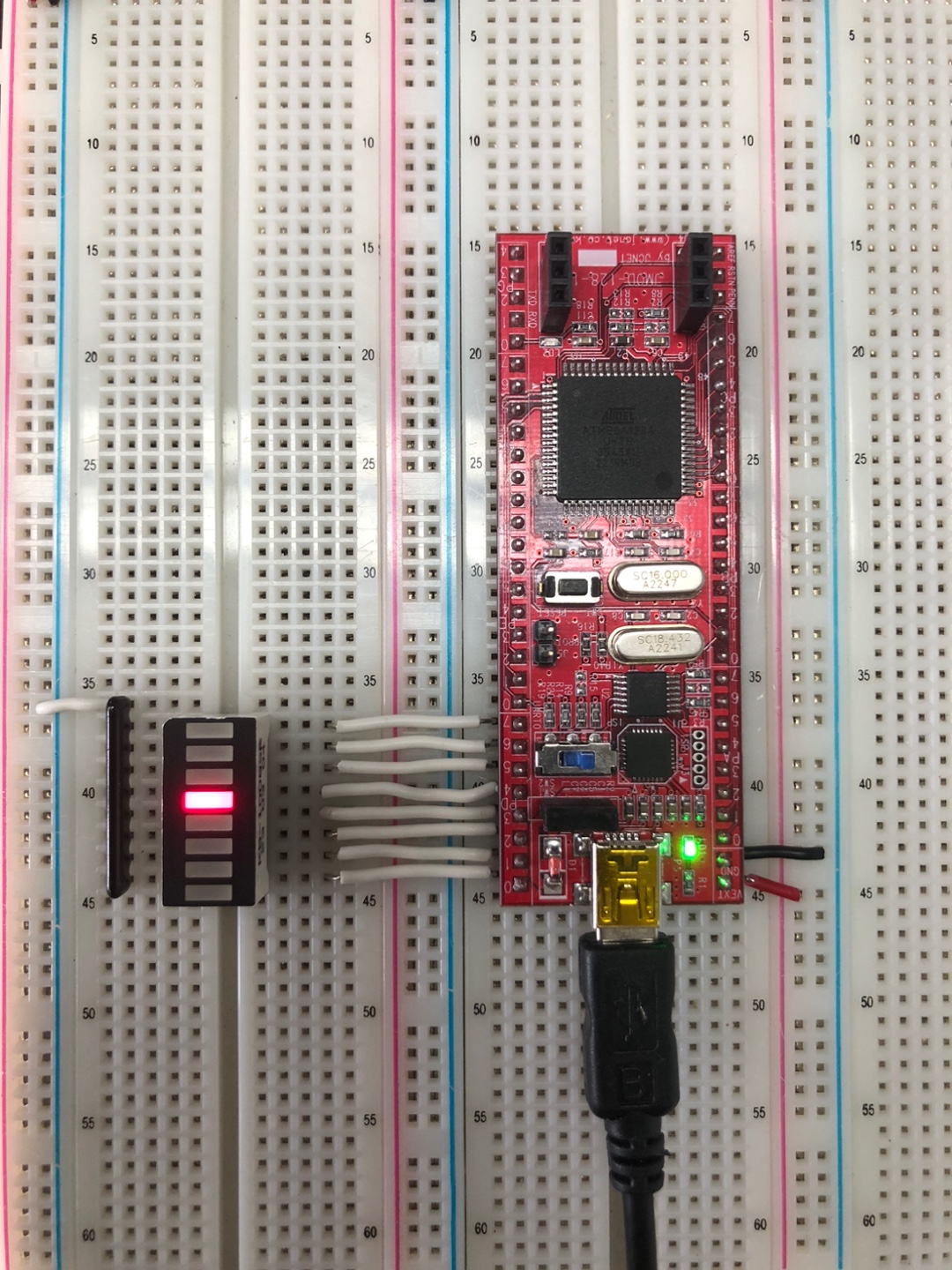 1) 목표: Atmega 128a의 PORTD 8개의 LED를 연결 한 뒤, 0번째 비트에서 7번째 비트까지 Shift하면서 출력