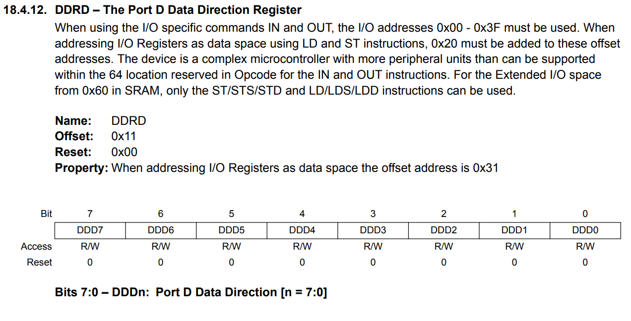 2) Atmega128a Datasheet에서 DDRD, PORTD