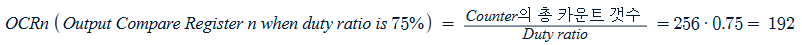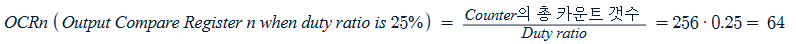 📌 4단계) Duty ratio를 정하고, 그에 따른 OCRn (Output Compare Register n)를 정한다.