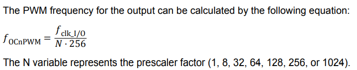 Fast PWM Mode 에서 fclk와 focn과의 관계는 다음과 같다.