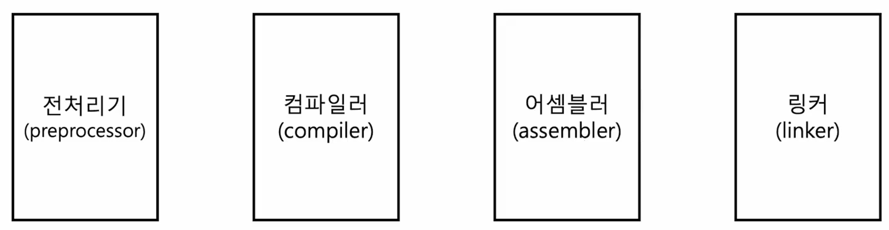 1. C 언의 컴파일 과정은 크게 다음 그림과 같이 4단계를 거쳐 실행 파일 (execute file)로 생성하게 된다.