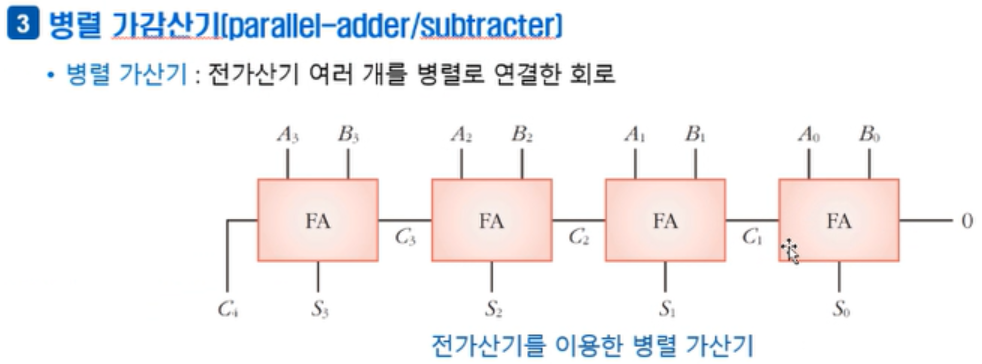 - 위 그림에서 알 수 있듯이 4bit parallel-adder는 4개의 Full-adder를 병렬로 연결함으로서 만들 수 있다.