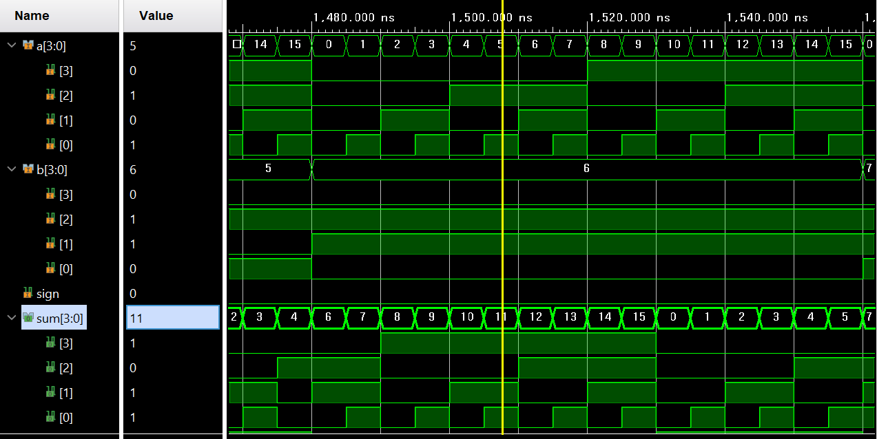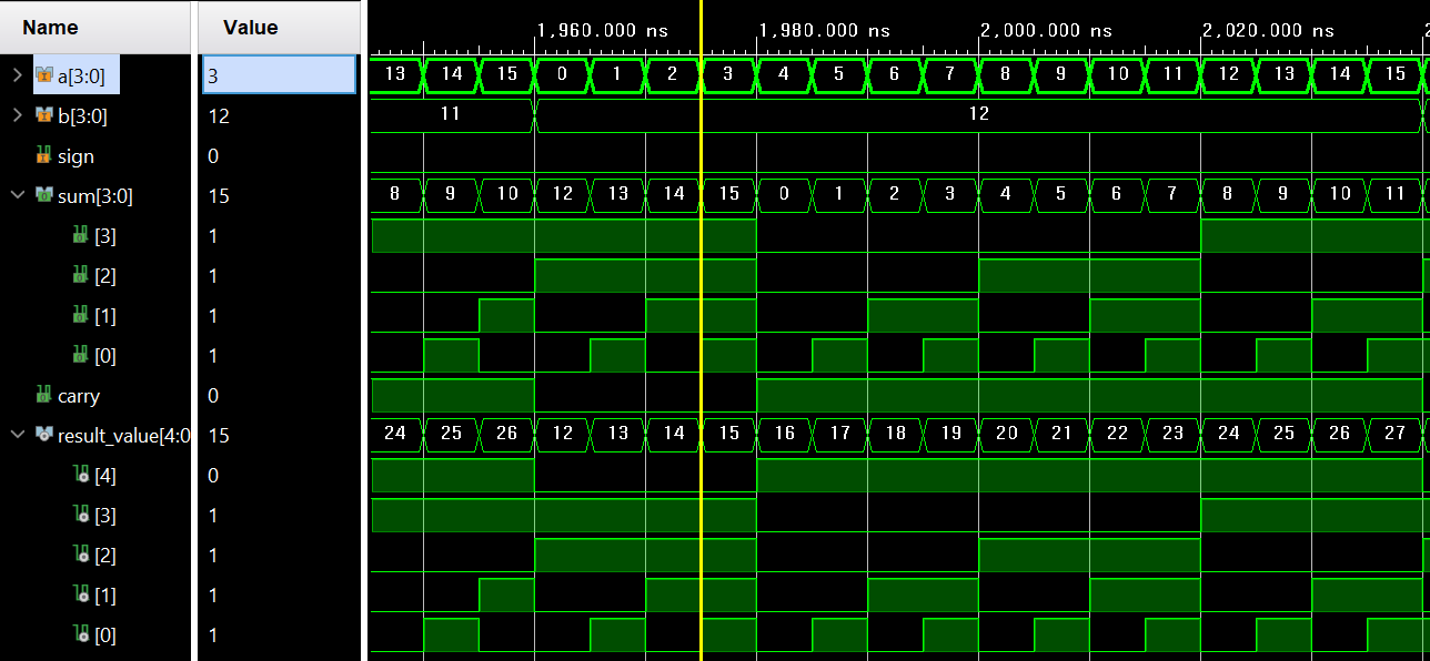 - 덧셈 연산 값이 15을 넘으면 Overflow가 발생하며, 0으로 돌아가 잘못된 출력이 발생한다는 점도 유념해야한다.
