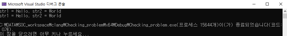 - 상황) 두 개의 문자열 상수를 가르키는 포인트 변수가 있으며, swaping 함수를 통해 두 개의 포인터