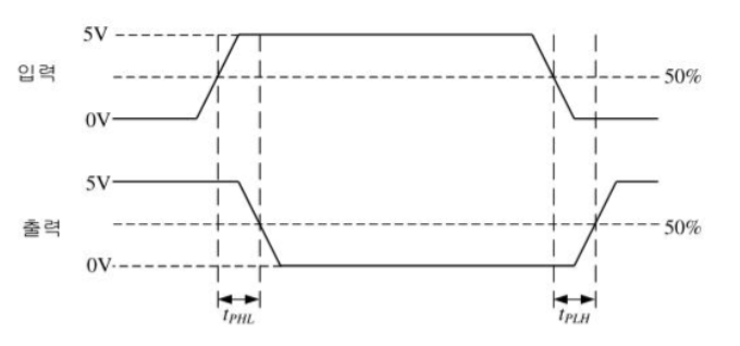 - 이 때, 입력 신호가 변화하기 시작한 시점부터 출력 신호가 그에 반응하여 변화하는 시점까지의 시간을 "전파 지연시간" 이라 한다.