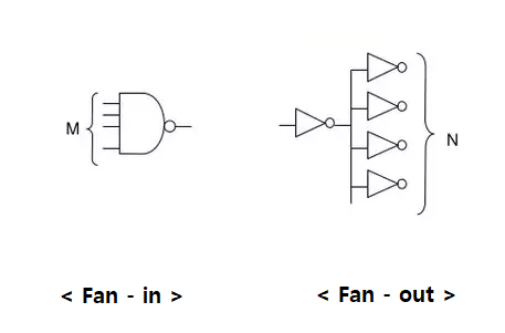 - Fan-in : 논리 게이트의 동작에 영향을 주지 않고, 최대한으로 접속할 수 있는 입력단의 수
