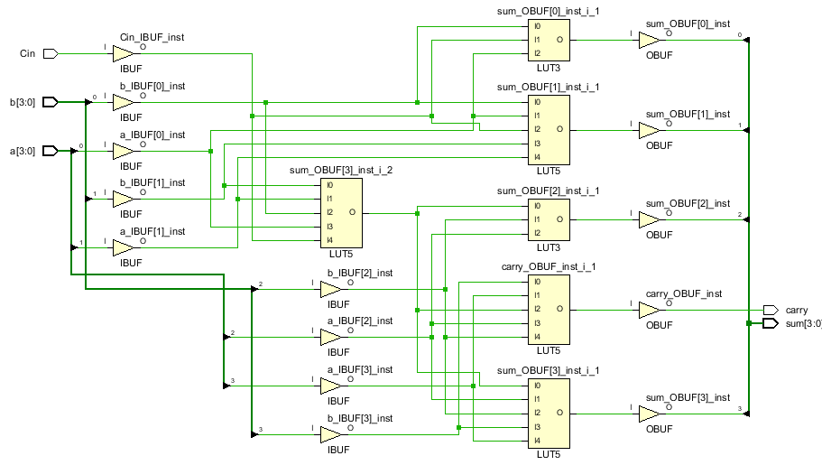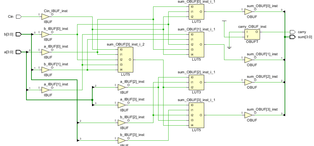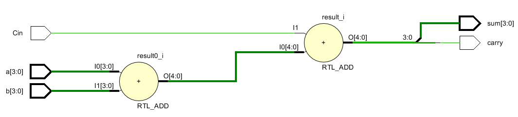 - 입력 데이터 : 4 bit 크기를 갖는 a, b와 1 bit 크기를 갖는 Cin