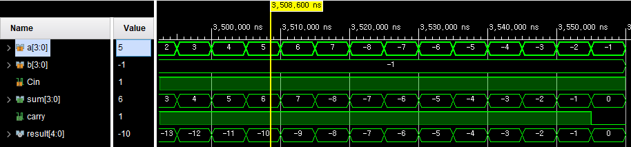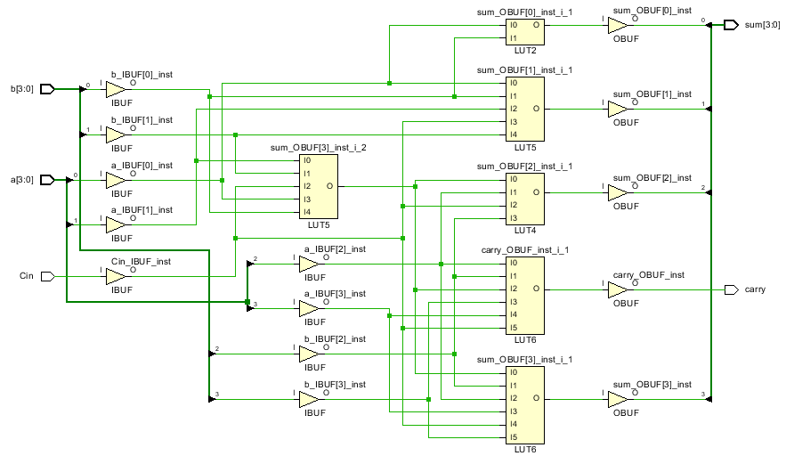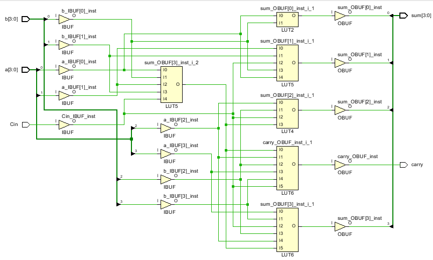 - 입력 데이터 : 4 bit 크기를 갖는 a, b와 1 bit 크기를 갖는 Cin
