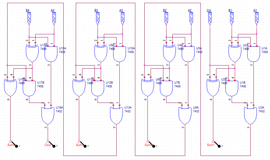 2. 4비트 병렬 가산기의 구현 (PSpice)