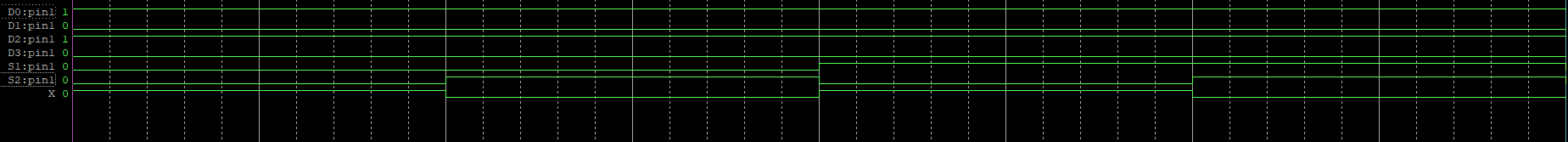 - 시뮬레이션을 통해 선택선 S0, S1에 의해 선택된 입력선으로 들어오는 데이터가 출력으로 나가는 것을 확인할 수 있다
