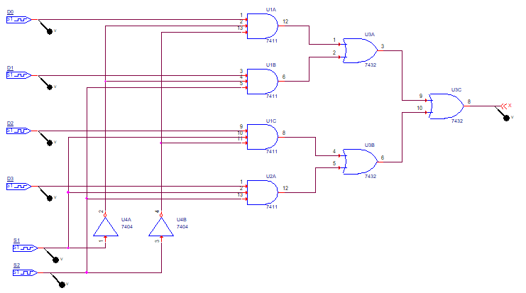 - MUX는 4개의 입력선이 존재하지만, 실제로 출력, Y와 연결된 입력선은 X1이다.