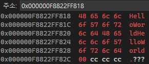 영역까지 넘어가 Overwrite (= Overflow) 한 것을 확인 할 수 있다.