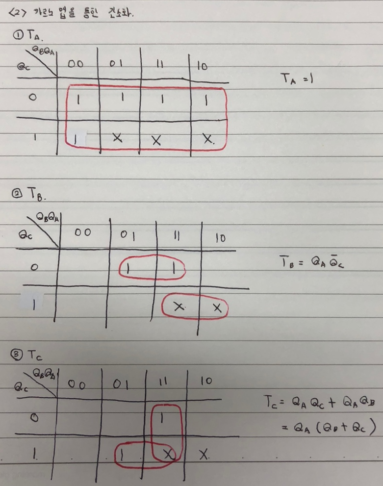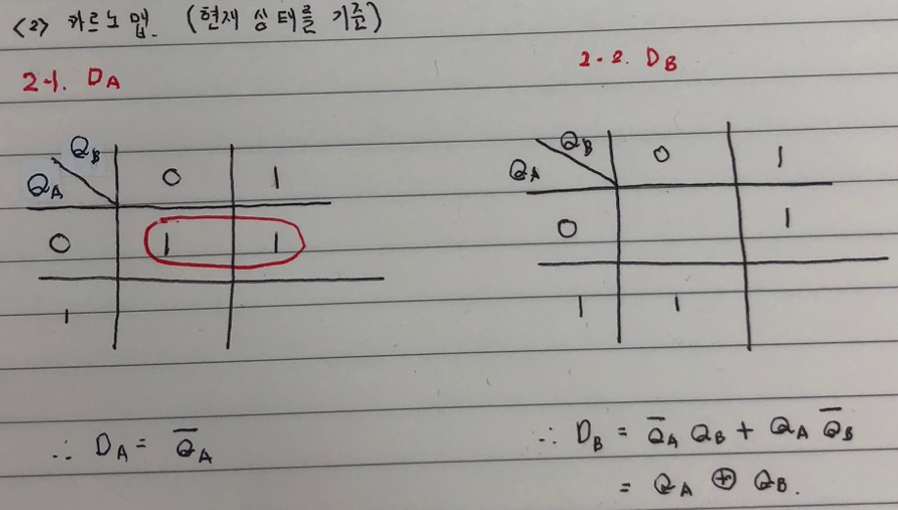 | 5 | 논리식 구하기 | - 플립플롭의 입력별 논리식 구하기 (카르노 맵 간소화) |