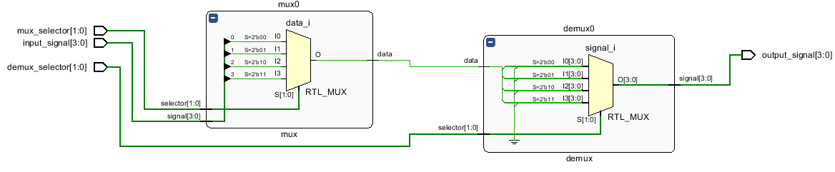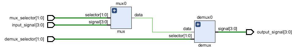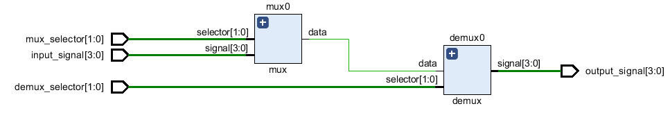 demux demux0 (wire_between_mux_and_demux, demux_selector, output_signal);