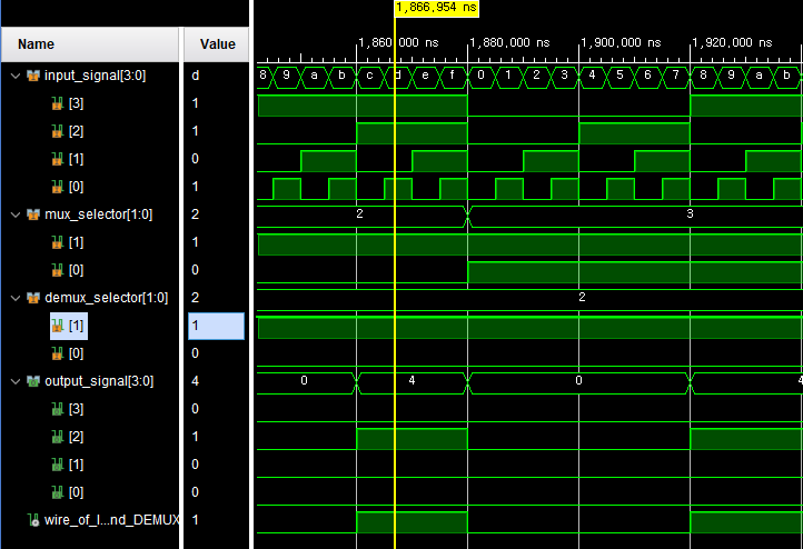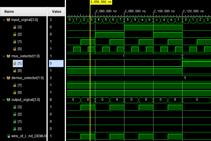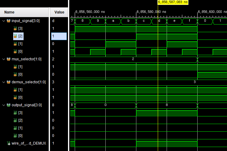 MUX selector : 1, DEMUX selector : 2