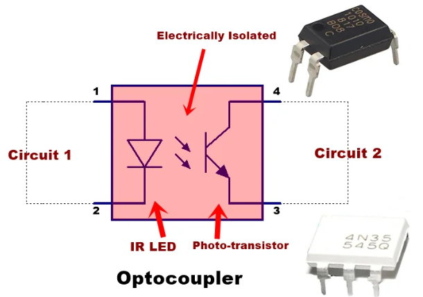 - 포토 커플러 내부에서 발광 소자는 전기신호(펄스파)를 빛으로 바꾸면 수광소자는 발광 소자가 발산하는 빛을 받아서 다시 전기 신호로 바꾸는 역활을 수행한다.
