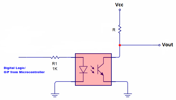- Vin이 Low일 경우, LED와 포토트렌지스터가 off되어 Vout과 Vcc가 연결되어 Vout = Vcc 값을 갖는다.