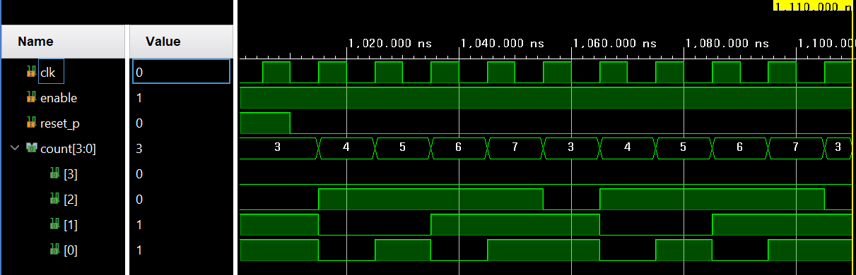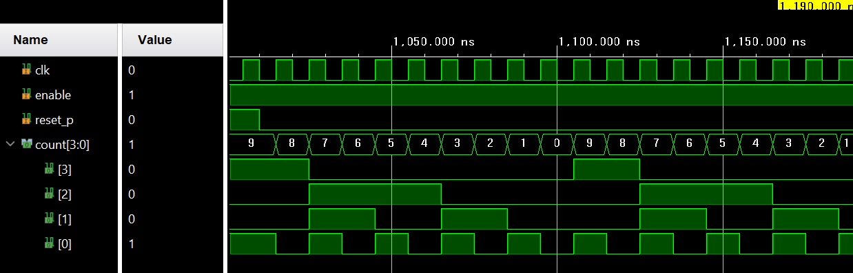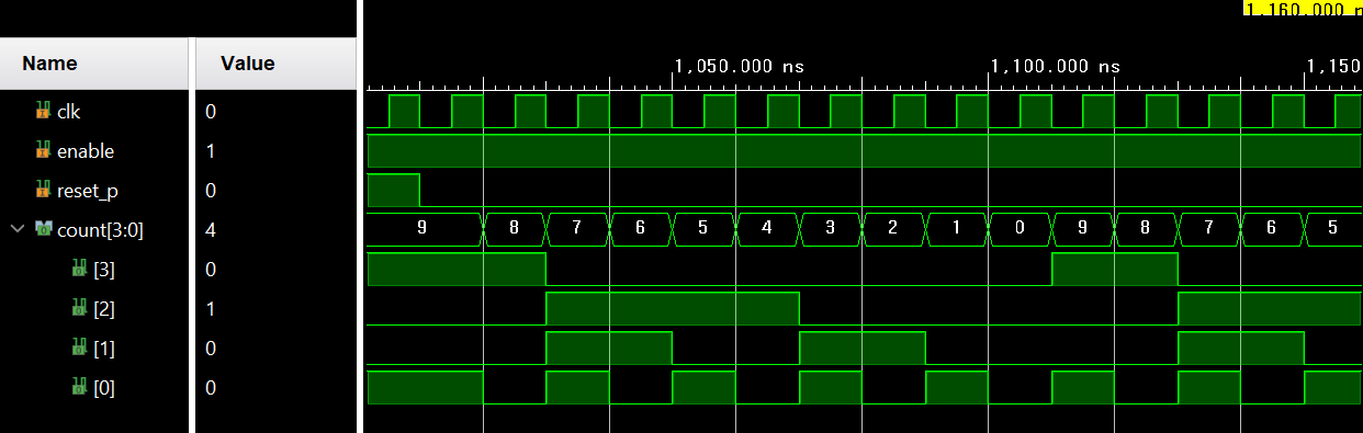 - clk (Clock Pulse)이 Negative edge에서 down counting이 동작한다.