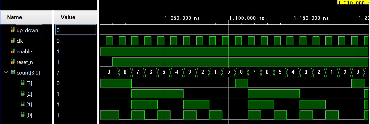- up_down 변수가 1인 경우 (= Down Counter로 동작하는 경우)