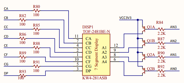 - Basys3의 FND의 회로도는 다음과 같은 구조를 갖는다.