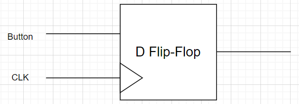 - 이번에는 Delay time을 갖기 위해 D Flip Flop을 사용할 것이며, D Flip Flop은 edge trigger에서 동작하며, 입력값을 그대로 출력값으로 내보내기 때문에 Delay time을 갖고, Button값을 읽어내기에 적합하다.