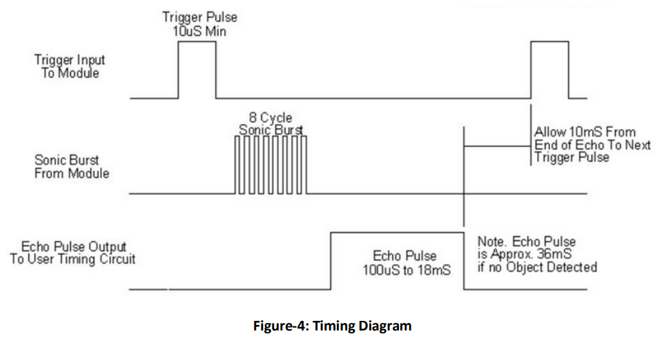 S_IDLE (10ms) + Input_Trigger (10us) + Sonic_Burst (0.2ms) + Echo_Pulse (36ms, no Object Detected)