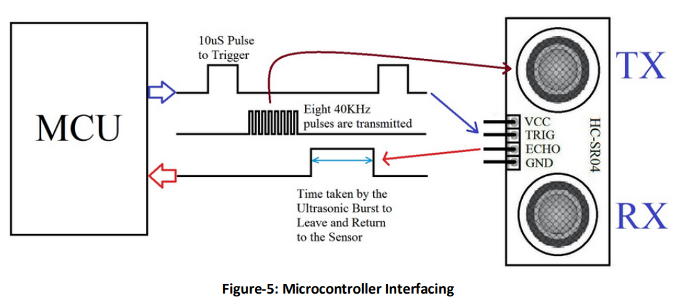 - usec counter를 통해 Echo Pulse가 활성화된 시간을 계산하며, usec counter가 Counting한 시간은 초음파가 발사된 시점부터 반사된 초음파를 받는 시점까지의 시간 을 의미한다.