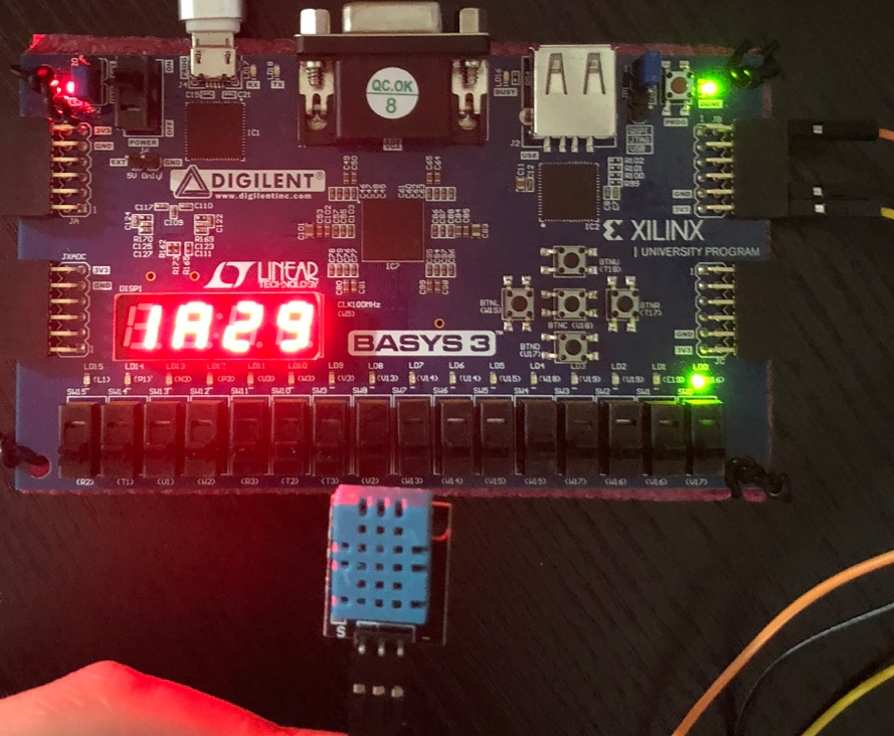 1. State diagram of dht11 Sensor ModuleMCU와 DHT 11 모듈 간에 통신 과정을 State diagram으로 그린다면 다음과 같이 표현할 수 있다. 2. DHT11로부터 온도, 습도 데이터 받아 Basys3의 FND로 출력DHT11로부터 데