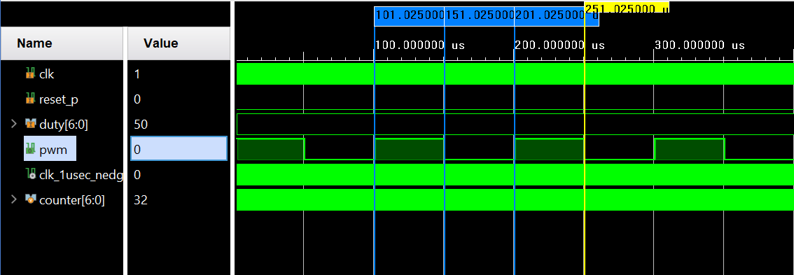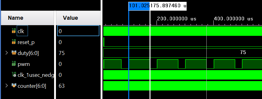- 이를 통해 Duty ratio는 (176 - 101) / 100 = 75 임을 확인할 수 있다.