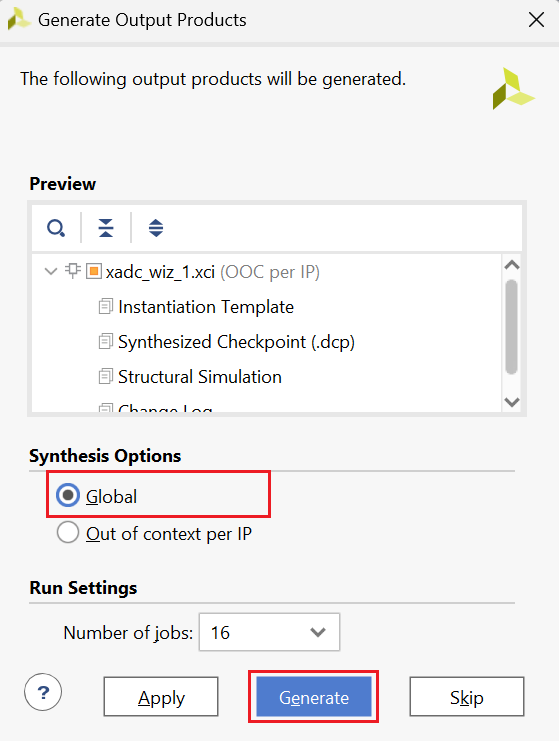 2.8. 8단계) Generate Output Products 차에서 Synthesis Options 메뉴창에서 Global 항목 선택