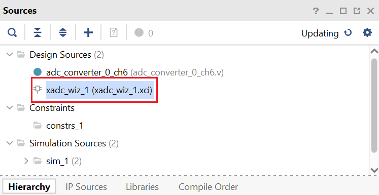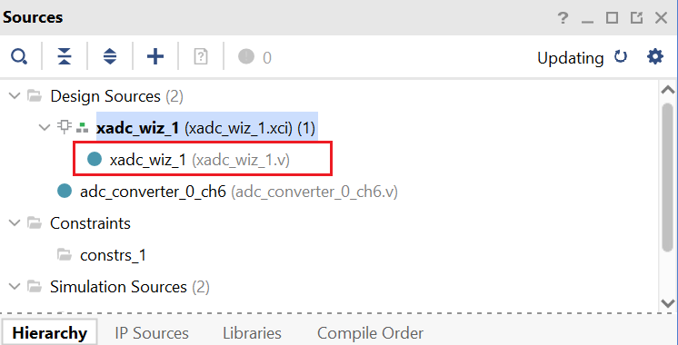 - Source 창에서 생성된 xadc 파일을 확인할 수 있으며, 더블 클릭을 통해 xadc source 파일 상세 내용을 확인할 수 있다.