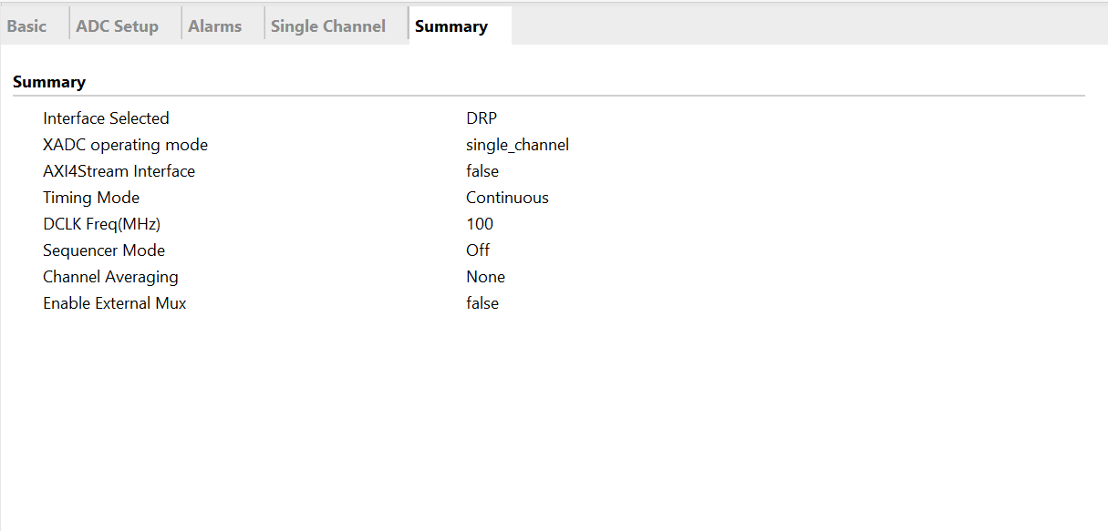 2.7. 7단계) XADC 모듈 설정에 대한 Summary을 통해 마지막 설정 항목 확인