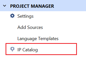 2.1. 1단계) Project Manager 메뉴창에서 "IP Catalog" 메뉴 클릭
