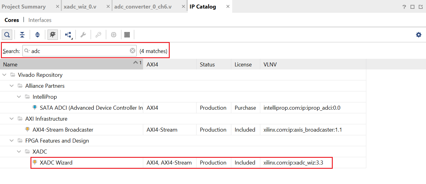 2.2. 2단계) Search 창에서 "XADC" 입력한 후, "XADC Wizard" or " xadc_wiz_1" 항목 더블 클릭