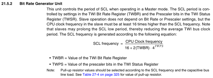 // System Clock과 SCL Frequency와의 관계식은 데이터 시트에서 확인