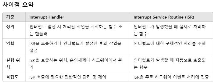 ★ ISR (Interrupt Service Routine)과 Interrupt Handler의 차이