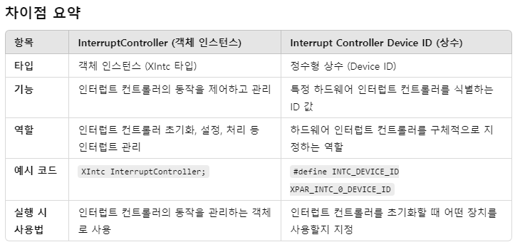 - 제어 구조체 초기화 : XIntc 객체의 인스턴스인 InterruptController를 초기화