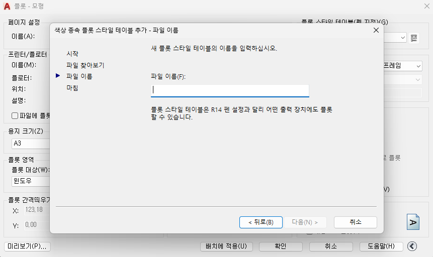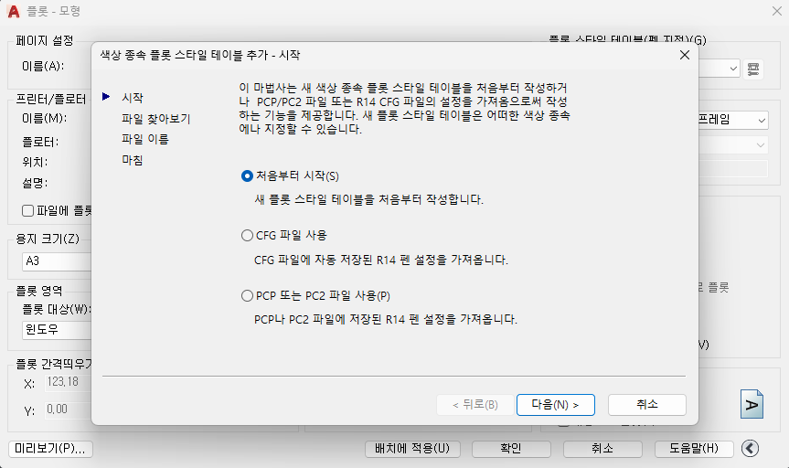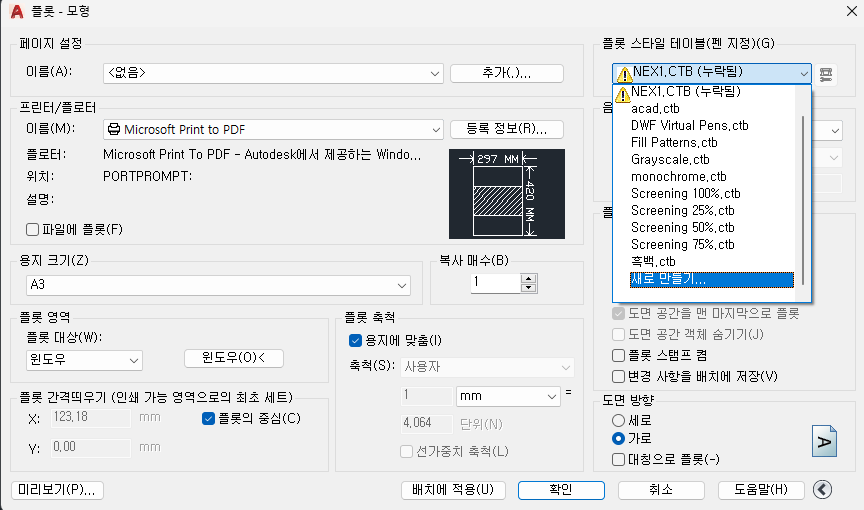 5) 플롯 스타일 테이블에서 "새로 만들기" 항목 클릭