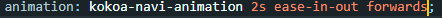 예시 - 3는 kokoa-navi-animation을 해당 block에서 2초 동안 ease-in-out 속도로 진행하며,
