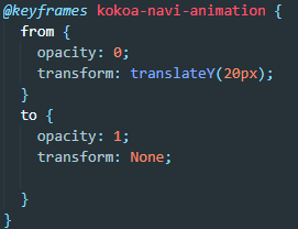 예시 - 1 은 kokoa-navi-animation 이라는 애니메이션은 처음에는 opacity: 0 , y 방향으로 20px 인 지점에 있었지만,