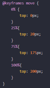 예시 - 2 은 move 이라는 애니메이션은 처음에는 top: 0px인 지점에 있었지만, 25% 진행상태에서는 top: 25px,