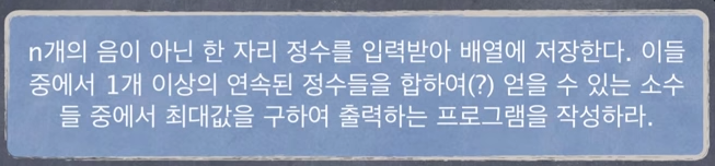 System.out.println("1개 이상의 연속된 정수값들을 합하여 얻을 수 있는 최대 소수값:"+max);