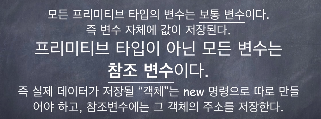 - 그리고, 사용자 정의 타입 변수에는 객체의 주소(참조)를 저장하여 객체에 접근할 수 있도록 만들어 준다.